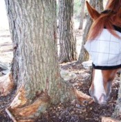 Acorns, Oaks and Horses By Eleanor Blazer Copyright©2008 Does your horse eat like a pig? Yes! Then acorns are one porcine delicacy he should avoid. Acorns are seeds or nuts produced by oak trees. There are more than 60 varieties of oaks in the continental United States. The bark, leaves and acorns contain an acidic chemical commonly known as tannin. Tannin has a bitter taste and is an astringent (contracts tissues and draws out fluids). It can damage the liver and kidneys of horses. Tannin also interferes with the utilization of protein. All plants contain some level of tannin. Oaks contain high levels. Within the family of oaks, red or black oak varieties contain the most tannin; white oak varieties contain the least. Buds and early spring leaves have a higher concentration of tannin than mature leaves. Green acorns have a higher concentration than ripe acorns. Live Oak Acorns Squirrels, birds and deer eat acorns with no apparent problems. These free roaming species search out the less bitter tasting acorn varieties (less bitter means a lower tannin level). Stored and ripe acorns that have been soaked due to rain will also be lower in tannin. Tannin is water soluble and leaches out. It is important to note these animals have access to other foods which will help buffer and dilute the tannin. Poisoning due to the ingestion of acorns is rare in horses which have access to plenty of good quality forage. An occasional acorn throughout the day should not harm a healthy horse with a digestive system full of long-stem fiber. The ingestion of buds and spring leaves should be avoided. Make sure low hanging or broken branches are removed before they can be eaten. Providing plenty of forage will help deter horses from eating these forbidden windfalls. Occasionally a horse will develop a taste for acorns. Such an individual would rather eat acorns than good quality forage. If your horse is one of these fanatics you will have to remove the horse from the pasture which contains the forbidden nut. The signs of acorn poisoning can be: loss of appetite, excessive salivation, blood in the urine or manure, colic-like pain, slow or irregular heart-rate, elevated temperature, pale mucous membranes, watery eyes and a depressed attitude. In the early stages manure is hard and dark in color; the horse may be constipated. Often, in the later stage, the manure changes to diarrhea. Mouth ulcers may form; salvia may escape from the nose. In extreme cases liver and kidney failure ensues and other organs begin to hemorrhage. Some poisoned horses may develop laminitis. In addition to the toxins created by the tannin in the acorns, there may be toxins released into the horse's system due to the sudden introduction of a "new feed". When the balanced microbial population in the large intestine is disrupted by the sudden introduction of different feeds laminitis often results. Large numbers of beneficial bacteria die and poisonous endotoxins are released into the bloodstream. Blood flow to the hoof is restricted and the connective tissue (the laminae) between the hoof wall and coffin bone begins to die. If the inflammation is prolonged the coffin bone will rotate downward. The rotation of the coffin bone results in a condition called founder. Horses that are extremely sensitive to tannin or have eaten large quantities of oak leaves, bark or acorns may die. If your horse develops acorn poisoning there is no antidote. The common treatment is supportive care. The affected horse must be removed from the source of the poisoning. Your veterinarian will probably give intravenous fluids to help flush out the toxins. Mineral oil and charcoal may be given to help rid the digestive system of the tannin. Hay and water is made available, which also helps dilute the poisonous material in the digestive system. Your veterinarian may also give pain killers to help make your horse more comfortable. The best thing for the health of your horses and trees is to protect them from each other. Horses are hard on trees. They disturb the root system, chew the bark when bored and rub the branches. Forests or woods do not make good pasture. Fence off any trees. If the trees are providing shelter or shade erect a horse-safe structure, such as a three-sided loafing shed. There is nothing more beautiful than a majestic oak tree and a horse - they just shouldn't be in the same picture. Copyright©thewayofhorses Eleanor Blazer |