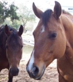 Do You Want to be Friends? By Eleanor Blazer Copyright©2011 "Babe, I want you to meet Alley. She's here from California and you are going to be pasture mates." "No way! Get her away from me! You can't make me like her." Babe tells me as she lunges at the dividing stall wall, ears back, teeth bared and nostrils flaring. As she whirls around she kicks the wall. Alley watches through the slats of the wall's upper section with her ears up and a hopeful look on her face. She wants to be friends. It's been a week since Alley arrived via commercial horse transport. After staying in quarantine to insure she didn't start running a temperature it was time for introductions. Both mares are due to foal - Alley in mid February and Babe in late March. Babe circles the stall and comes back to the dividing wall. With arched neck, bug-eyed, she puffs up and postures - trying to intimidate Alley. Alley steps forward and touches her nose to Babe's. Babe squeals, strikes, spins and kicks the wall again. Alley doesn't weaken and stays in place. Here comes Babe again. This time she stays longer. They touch noses. Alley squeals and decides Babe might not be good friendship material after all. Both go waltzing around their stalls. This dance occurs numerous times before Babe notices it's after five and she hasn't had supper. She spots me watching from the barn aisle. "I'm getting weak. You know I'm eating for two." She tells me. "Work on the hay you've scattered all over your stall and I'll get your grain, your highness." Laying back her ears and glaring at Alley, she informs me, "And you better feed me first!" Introducing two horses can be traumatic for all involved - humans and horses. Avoiding injury can depend on many factors. One method of introducing horses is to turn them out and hope for the best. This is very risky, and not recommended. Proper preparation can prevent many evils. Long before we introduced Alley and Babe, steps were taken to ease the transition. Evaluating personalities and matching compatible horses is one step. When we knew Alley was coming we evaluated all the horses and decided Babe would be her pasture mate. They were both in foal. Babe was at the bottom of the pecking order in the established herd and would back down quickly if challenged. We also knew Alley was not the "alpha" mare at her home in California. The chance of a full scale battle was low. Maintaining a safe environment is paramount. It is especially critical when disrupting the routine. Horses are flight animals and the instinct is to run when faced with the unknown. Pastures and stalls should be inspected for weak areas and reinforced. Protruding nails, boards or other objects that could cause injury should be removed or repaired. Fences should be made visible - a new horse might not notice hard-to-see wire strands. Dead-ends or traps should be eliminated so a horse can't be caught in a corner. Back shoes should be pulled. New horses should be quarantined. Check with your veterinarian for the length of isolation. Vaccination records, health concerns and management practices of the previous stable will play a big part in the quarantine time. The introduction should be gradual. Housing horses next to each other in safe solidly built stalls or adjacent pastures with good fences allows time for them to become familiar with each other. Before turning horses out in a strange pasture, allow each horse time to become acclimated. Lead the horse around the perimeter several times to give her a chance to see the fence. Each horse should be given several days to learn the fences and terrain by themselves. If possible divide the pasture or put the future pasture mates in adjacent lots. Be sure the dividing fence is safe. My horses are all trained to respect electric fence. I divided the pasture with an electrified wire. Babe and Alley were able to see each other, but not make contact. After several days of living in adjacent stalls and turn out areas we put the mares together. I picked a day that was sunny, with no wind. The pastures were dry and the footing was good. I turned the mares out after they had finished breakfast. This would give them all day to work things out, I would be home to watch them and they would not be "starving", which could lead to aggression at the hay piles. I put hay in both sections, put a mare in each, rolled up the wire and pulled the posts while the mares ate. For some time neither noticed the wire was missing. Then Alley went for a little walk, eased over to Babe and started eating hay along side her. "Hey, what are you doing here?" Babe asked. "There is safety in numbers. I'll watch your back, if you watch mine." Alley replied. Babe thought about that for a moment. "Well, I guess that's okay, as long as you don't eat all the hay." Both mares settled to eating and that was it. A week later the veterinarian arrived to give Alley her nine month EHV-1 vaccination. I brought Alley in from the pasture and Babe went nuts. "Where are you taking her? Are you bringing her back? I can't live without her!" she yelled as she raced up and down the fence. Alley was in the barn entry way, which is about eight feet from the pasture gate. She received her shot, had a quick look-over and returned to the pasture. The reunion was emotional as they commiserated over their long separation. Alley and Babe * For information about horse care take the online course "Stable Management" taught by Eleanor Blazer. Earn certification or work toward a Bachelor of Science degree in equine studies. Go to www.horsecoursesonline.com for more information. Visit Eleanor's web site at www.thewayofhorses.com Copyright©thewayofhorses Eleanor Blazer |