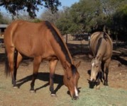 Stall Confinement By Eleanor Blazer Copyright©2009 Your heart is racing; your palms are sweating; your knees are weak…are you having a heart attack? No - you're watching your favorite mare race around the pasture like a lunatic. Her "airs above the ground" are outstanding; her rollbacks before she hits the fence are perfect; her lead changes are precise. But you're thinking of putting her in her stall before she injures herself. Stall confinement makes us feel good, but how about the horse? "Confine" means: "to restrict; to incarcerate; to limit; to keep within a boundary". It doesn't sound very pleasant. Stall confinement can protect your horse from injury and foul weather. But it leads to other problems. • Chewing - chewing is not the same thing as cribbing. When a horse chews, he splinters the wood, which is then dropped or swallowed. The splinters can cause laceration of the gums, tongue and mucous membrane. The wood splinters can also cause problems in the digestive tract. The damage done to wooden walls can be extensive and expensive. Horses in confinement usually chew because they are bored or lack long-stem fiber (forage). • Colic - colic is the word we use to describe any equine stomach pain, regardless of cause. The horse is a continuous grazer. In his natural environment the horse is constantly on the move, - searching for forage and water. The movement aids digestive mobility. Confinement restricts this natural aid to digestion. • Cribbing - If a horse clenches the edge of an object with his front teeth - such as a board or his feed tub-- arches his neck and then appears to suck air - he is cribbing. You can usually hear a grunting noise which can sound like a burp or belch. Confinement is only one of the many causes of cribbing. One or more of the following may also cause cribbing - environment, lack of forage, over-feeding of concentrates, ulcers and boredom. In addition to damaging property, cribbing wears down the teeth. Colic tends to present itself more often in cribbers. Many dedicated cribbers prefer to crib than eat, resulting in weight loss. • Developmental Orthopedic Disease (DOD) - This disease is seen in young, fast growing horses. It is the inflammation of the growth plate in the long bones; resulting in pain, heat and swelling of the joints (primarily the knees, hocks and fetlocks). Exercise is an important part of joint development and health. Growing foals need exercise. The freedom to run and play enhances bone growth and development. Forced exercise is not good for foals and should be avoided. Do not keep foals confined in a stall or small area. • Enteroliths - Enteroliths or bezoars are stones that form in the intestinal tract of horses. They are made of minerals - primarily magnesium, ammonium and phosphate. The cause of the stone formation is under constant research. At this time it is believed that enterolithiasis is caused by several factors: genetic, environment and diet. Stall confinement and lack of access to pasture increases the risk of enterolith development. Exercise improves the mobility of the intestinal tract and grass is thought to dilute the mineral concentration. • Hoof Problems - unbalanced hooves; dry, brittle hooves; soft, rotten hooves are a few hoof related problems caused by stall confinement. We want to provide our horses with absorbent bedding and a clean, soft area to rest. But this environment can cause heel and quarter cracks, and contracted heals - leading to unbalanced hooves. Lack of blood flow to the hooves due to restricted exercise is detrimental to a healthy hoof. Navicular disease is very common in horses confined. An uneven surface in the stall can lead to strain on the joints, ligaments and tendons. If the stall is allowed to become wet - and remains wet, the hoof can become rotted and thrush may develop. Confinement is not conducive to healthy balanced hooves. • Injury - the main reason we confine horses to a stall is to avoid injury. But stall confinement can cause injury. Horses can become cast. A cast horse is one that has tried to roll over, but is too close to the wall. The legs are up against the wall and the horse cannot stand. While, this can happen in a pasture, it is more common in stalls. A cast horse can injure himself while struggling to get up. If he is not found and rescued, a twisted intestine or suffocation may occur. To avoid the chances of a horse becoming cast, stalls should be large and bedding piled around the sides to prevent the horse from getting too close to the wall. There are commercial products on the market claimed to help prevent a horse from becoming cast. Neglecting the care of the stall may also cause injury. Periodically the stall should be inspected for nails, loose or rotten boards and solid flooring. Water cups, feeders and other pieces of equipment need to be inspected. Healthy horses, lacking sufficient exercise, can injure themselves while trying to release excessive energy. Kicking, rearing, pacing, pawing and other extreme movement can lead to injury. • Restricted Blood Circulation - horses need exercise to stay healthy. Exercise promotes increase blood circulation, needed by the equine body to remain healthy. • Respiratory Conditions - dust, mold and lack of fresh air will lead to respiratory problems. The most renowned horse related respiratory problem is called "heaves", also known as chronic obstructive pulmonary disease (COPD). Horses prone to heaves cannot tolerate dust, mold, pollen and other allergens present in the environment. Stall confinement concentrates these potential COPD triggers resulting in an attack to the respiratory system. COPD rarely develops in horses not confined. Air tight stalls should be avoided. Good air circulation, free of drafts is a must for stabled horses. • Ulcers - an ulcer is a painful lesion in the lining of the digestive system. There are many causes of ulcers. Lack of forage, too much concentrate in the diet, lac